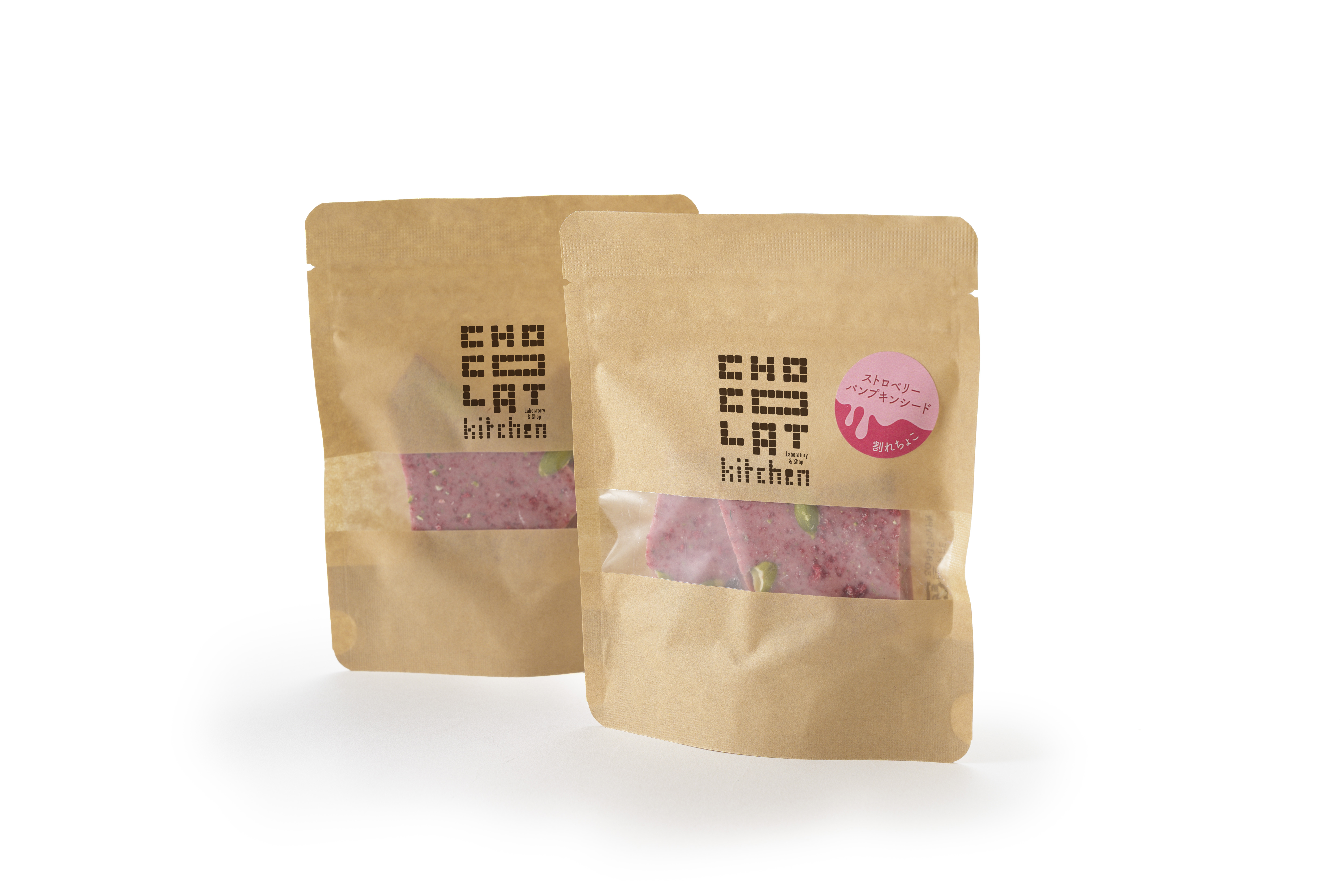イチゴチョコレートに、ラズベリーとパンプキンシードをトッピング。ピンクカラーに心躍る、甘酸っぱい割れチョコです。
